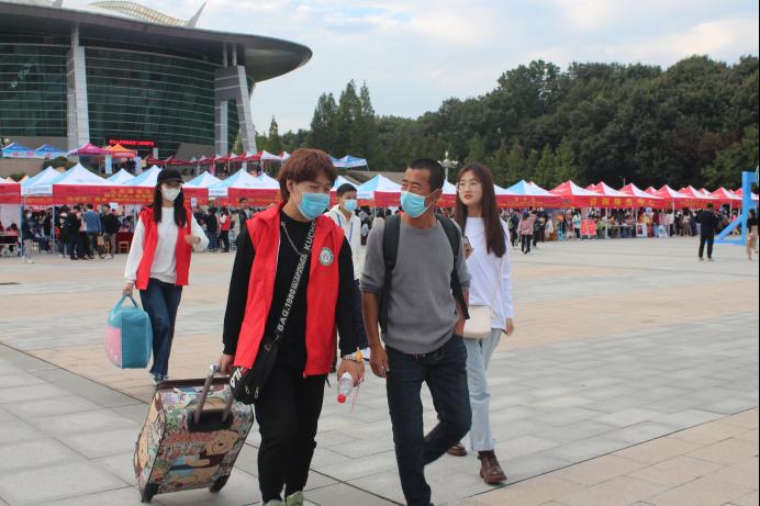 领导老师高度重视本次迎新工作,亲自莅临现场指导工作,新生班级辅导员曹栋、陶青青全程参与迎新。在迎新现场,他们亲切慰问工作人员及志愿者,详细询问迎新工作进展,强调要注重疫情防控安全,佩戴好口罩。同时,他们与新生、家长亲切交流,了解新生情况,让同学们对自己未来的大学生活有了初步的认识与了解,充分体现了学院领导老师对迎新工作的重视和对新同学的关心。