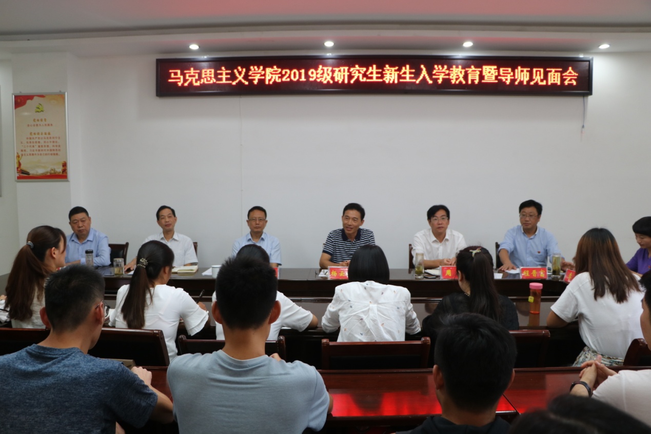 2019级硕士研究生入学教育暨导师见面会在社科楼323会议室举行。学院院长杨云善、党委书记唐国战及领导班子成员周智、黄世明、门献敏、程晋富,导师代表李蕊等出席会议,2019级全体硕士研究生参加会议,会议由黄世明主持召开。