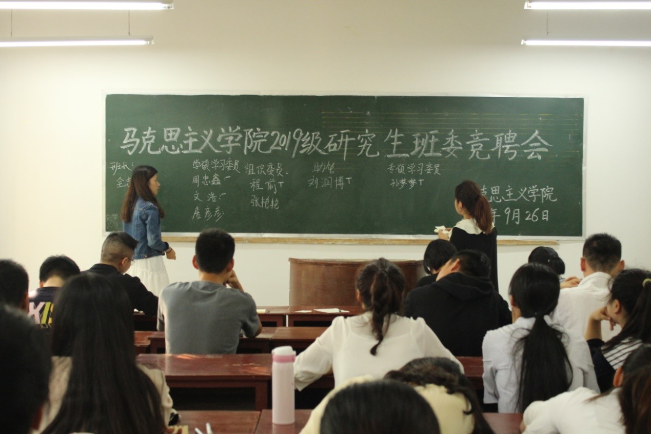 召开2019级研究生教育会和班委竞聘会。研究生秘书卢云晓、班主任郑晨霞、部分学长和2019级全体研究生参加会议,会议由卢云晓主持。