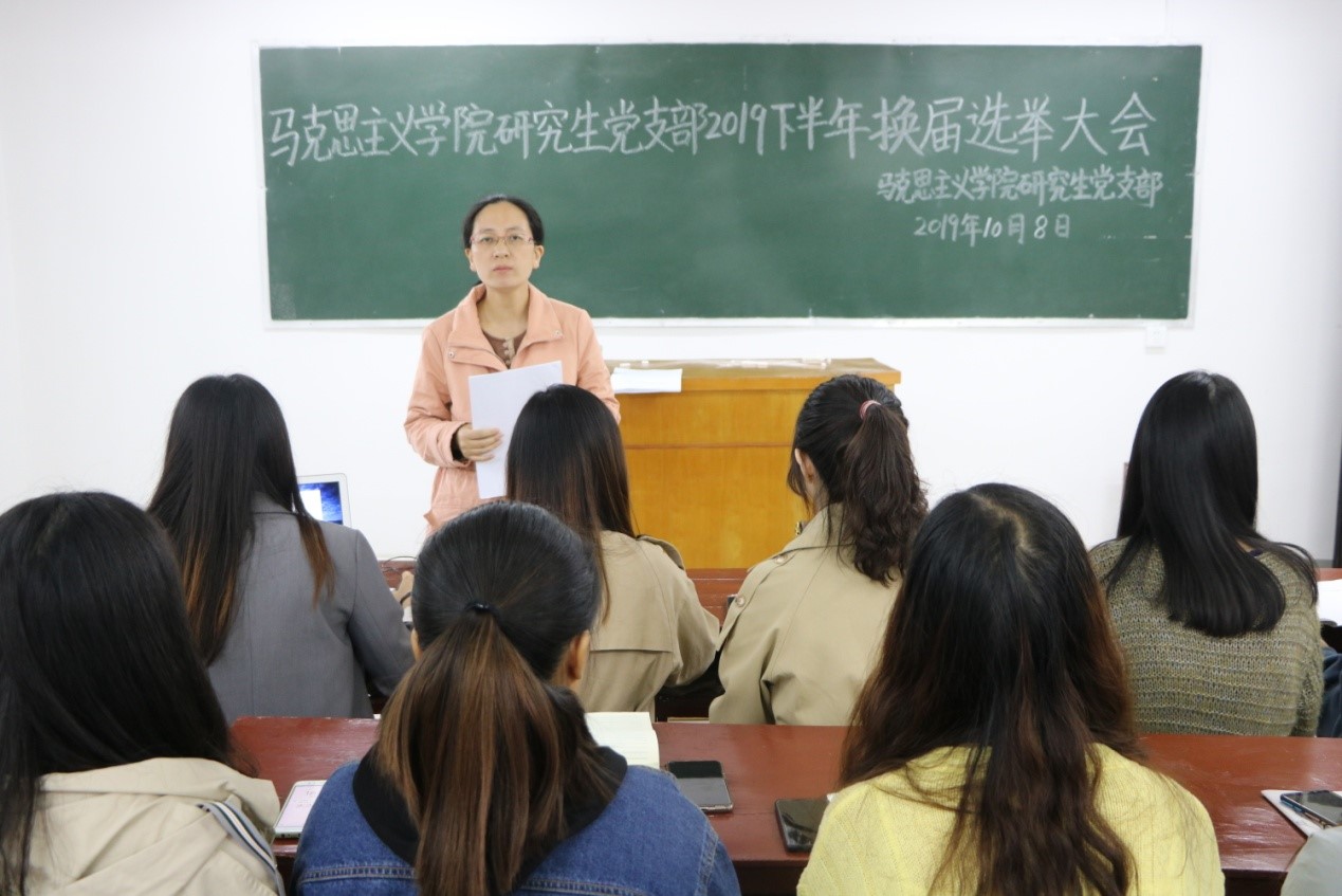 研究生党支部换届选举大会在教五楼203教室举行。全体支部党员参加本次会议,支部书记卢云晓主持会议。