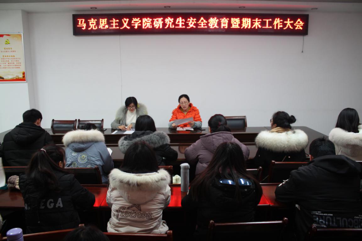 在323会议室召开关于安全教育以及期末工作的会议,研究生教学秘书卢云晓和班主任郑晨霞及全体研究生参加了此次会议。