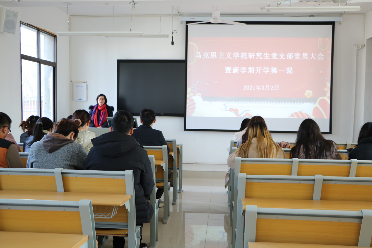研究生党支部于教五楼203教室召开党员大会暨新学期开学第一课。会议由研究生党支部书记郑晨霞主持,支部全体党员,发展对象参加会议。