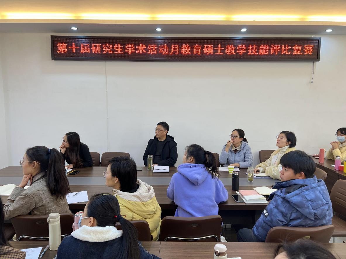 举办了教育硕士学科教学(思政)专业教学技能大赛。11月21日与24日分别举行了初赛和复赛,初赛阶段43名学生全员参加,最终选拔4名同学进入复赛。复赛由卢云晓主持,程晋富等领导老师出席,全体教育硕士生到场观摩。