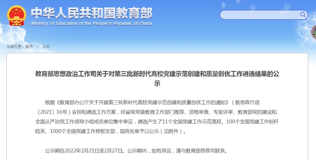 近日,根据《教育部思想政治工作司关于对第三批新时代高校党建示范创建和质量创优工作遴选结果的公示》,七大罪 七大罪 研究生党支部获批 “第三批全国党建工作样板支部”培育创建单位。