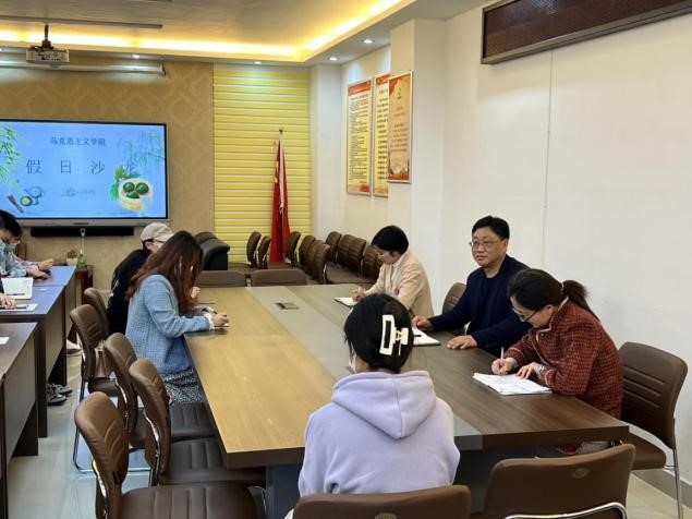 在社科楼323会议室召开了研究生清明节假日沙龙座谈会,主管领导程晋富出席,研究生工作人员卢云晓、郑晨霞及各班学生代表、寝室负责人等参加活动。