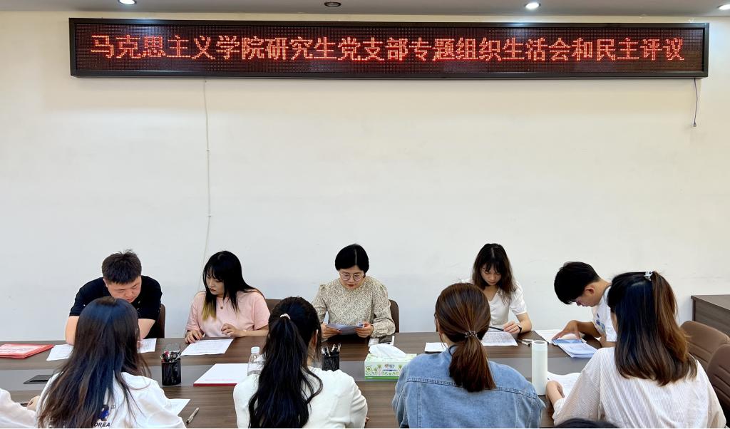 研究生党支部于社科楼323会议室召开专题组织生活会和民主评议会,会议由支部书记郑晨霞同志主持。