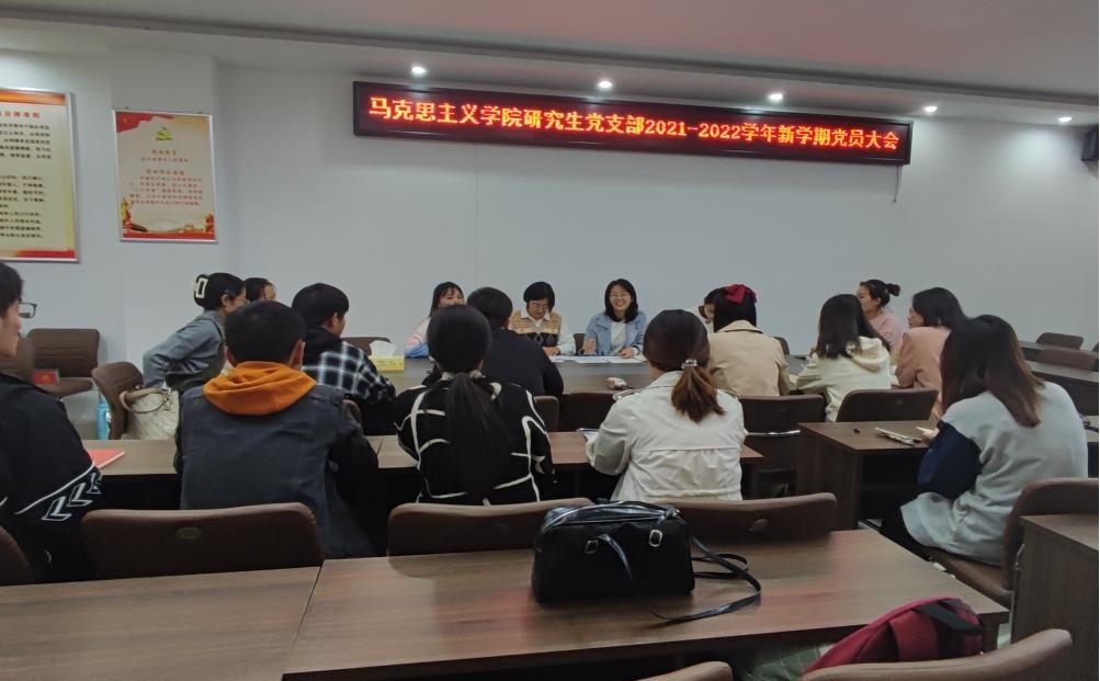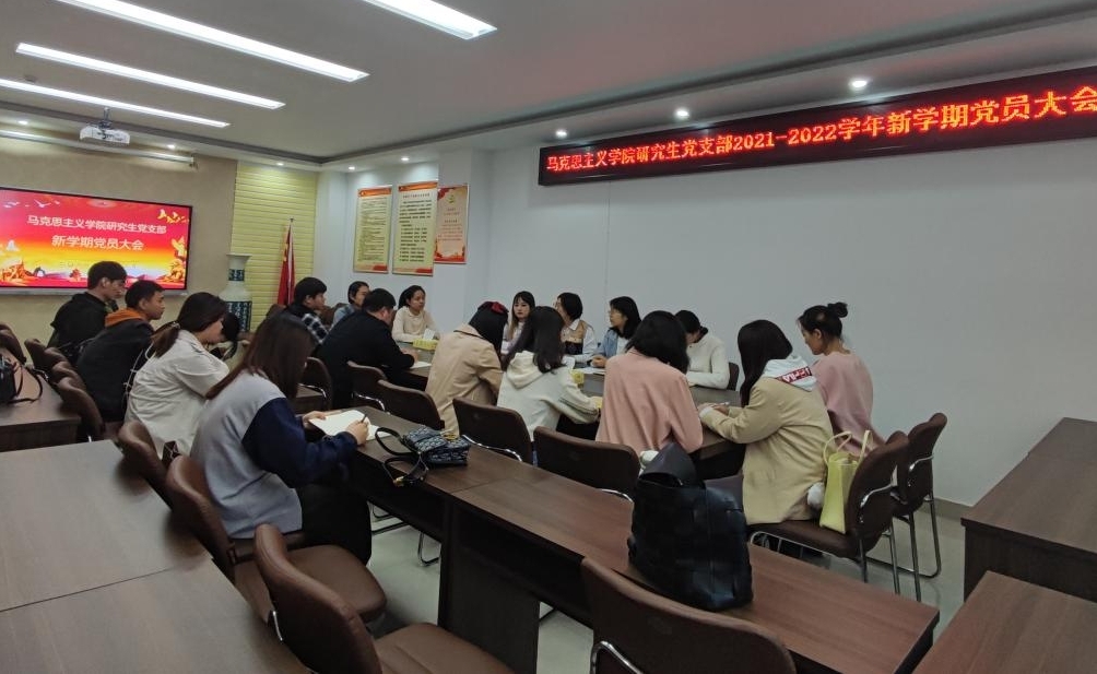 研究生党支部于2021年10月13日下午17:20在社科楼323会议室召开新学期党员大会,会议由支部书记郑晨霞主持。