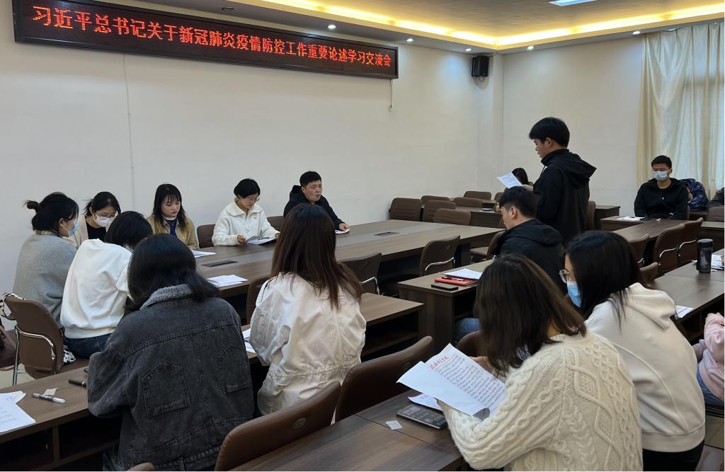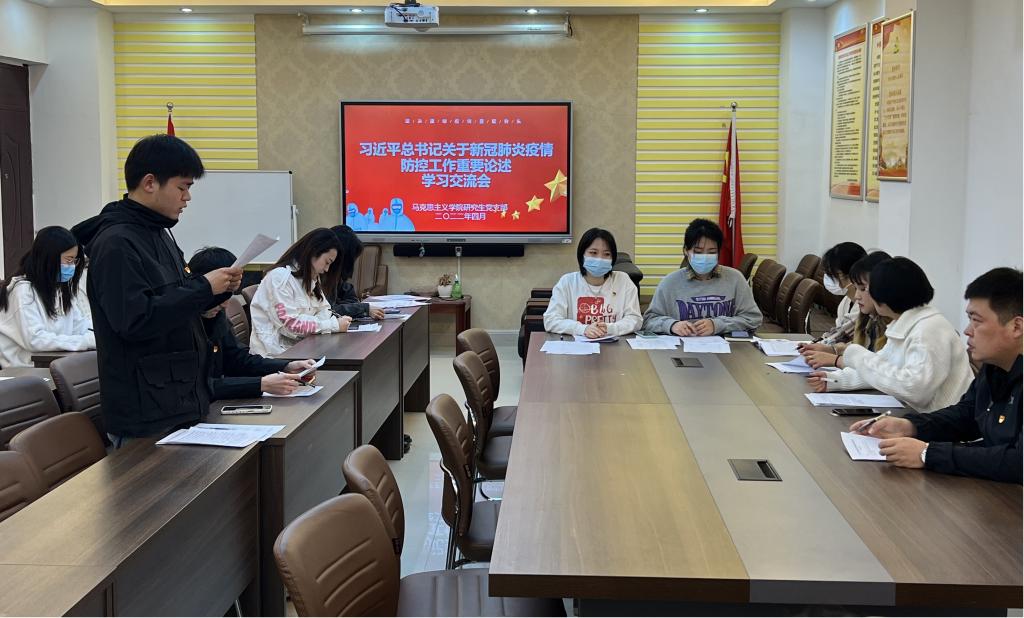 研究生党支部于社科楼323会议室开展集体学习交流会,会议由支部书记郑晨霞主持。