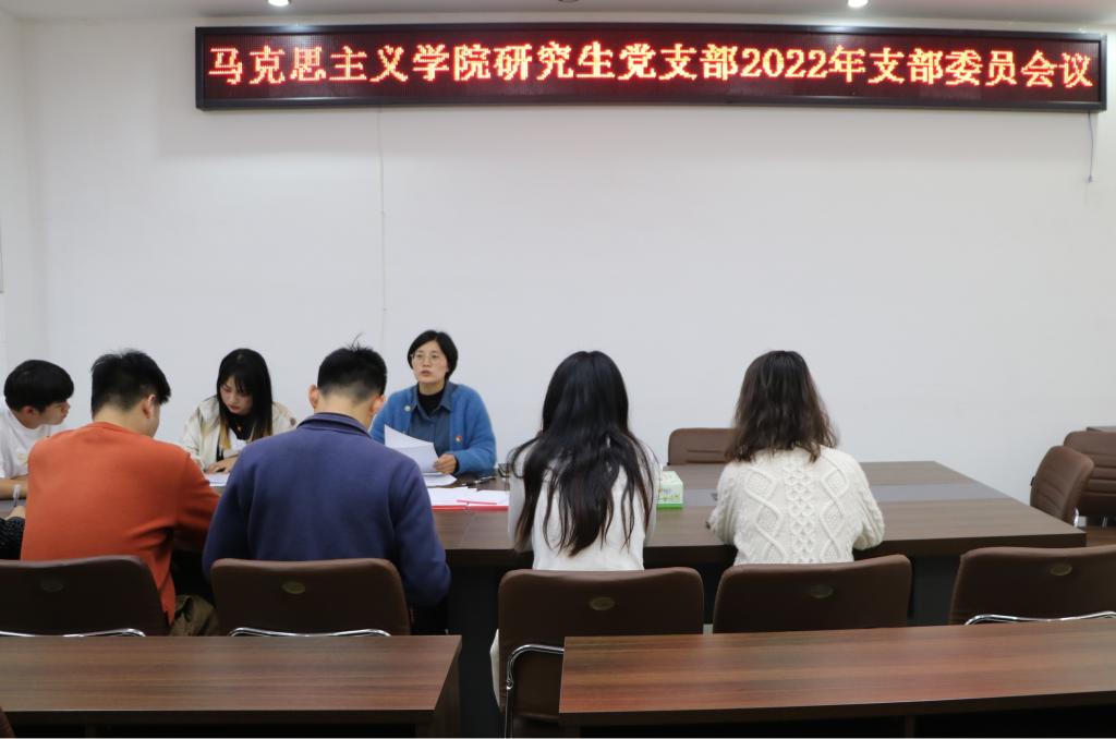 研究生党支部于社科楼323会议室召开2022年支部委员会议,会议由支部书记郑晨霞同志主持。