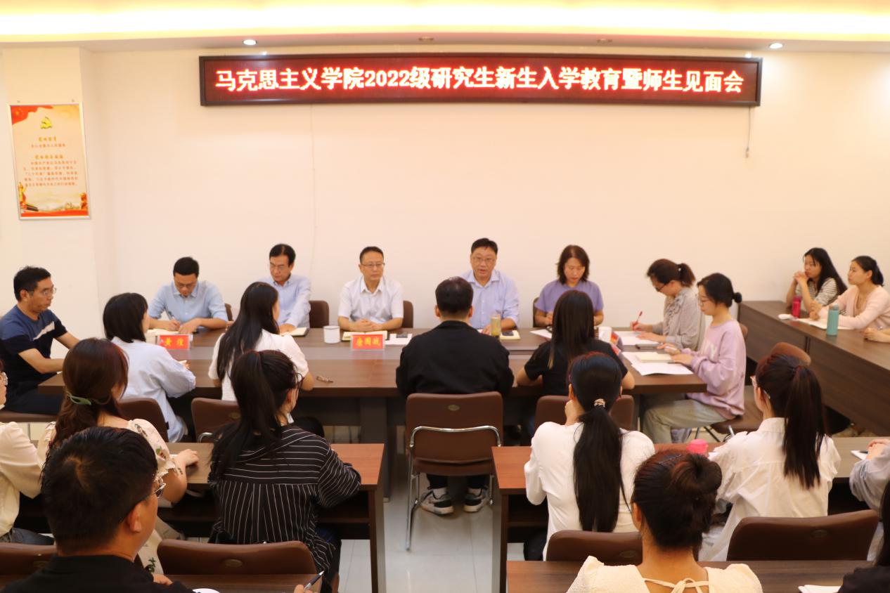 9月22日下午,2022级研究生入学教育暨师生见面会在社科楼323会议室顺利召开。院长唐国战副院长周智程晋富訾其伦,党委副书记黄煌,导师代表王建礼,研究生工作人员卢云晓、周钰婷等出席会议2022级全体在校研究生及老生代表共同参加了此次会议