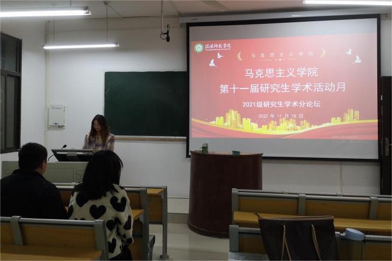 于11月18日下午,在教五楼201教室举办2021级研究生学硕班学术分论坛。论坛以线上线下相结合的形式进行开展,21级全体学硕研究生参加。论坛由学习委员韩晨曦主持。