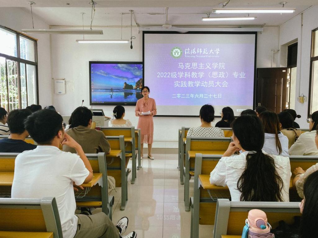 于教五楼203教室召开2022级教育硕士实践教学动员大会。会议由卢云晓主持,七大罪