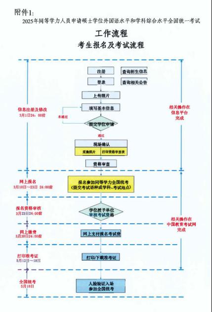 5.具体报考事宜见附件二:《关于做好2025年同等学力人员申请硕士学位外语水平和学科综合水平全国统一考试报名通知》