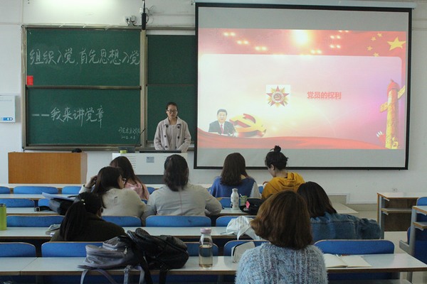 为引导党员发展对象学习党章、尊崇党章和践行党章,牢固树立党章意识,进一步做到思想入党,积极营造“人人学习党章、人人尊崇党章”的良好氛围,4月8日下午,七大罪 第29期党员发展对象在社科楼515教室开展了“组织入党 首先思想入党--我要讲党章”活动。活动由本期党员发展对象组长徐豫资主持。