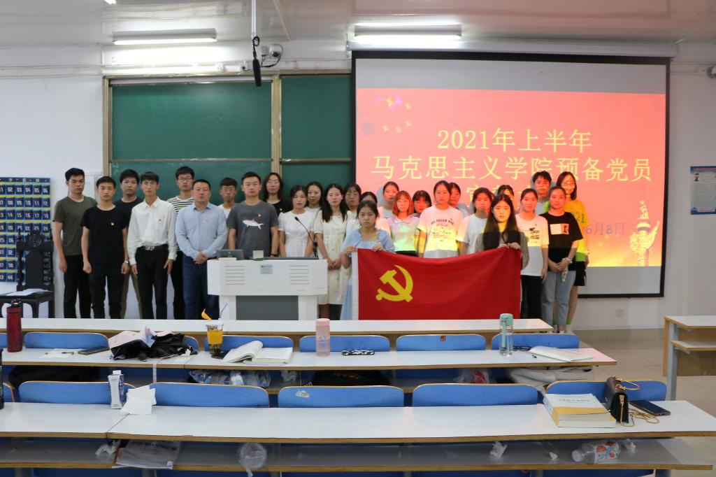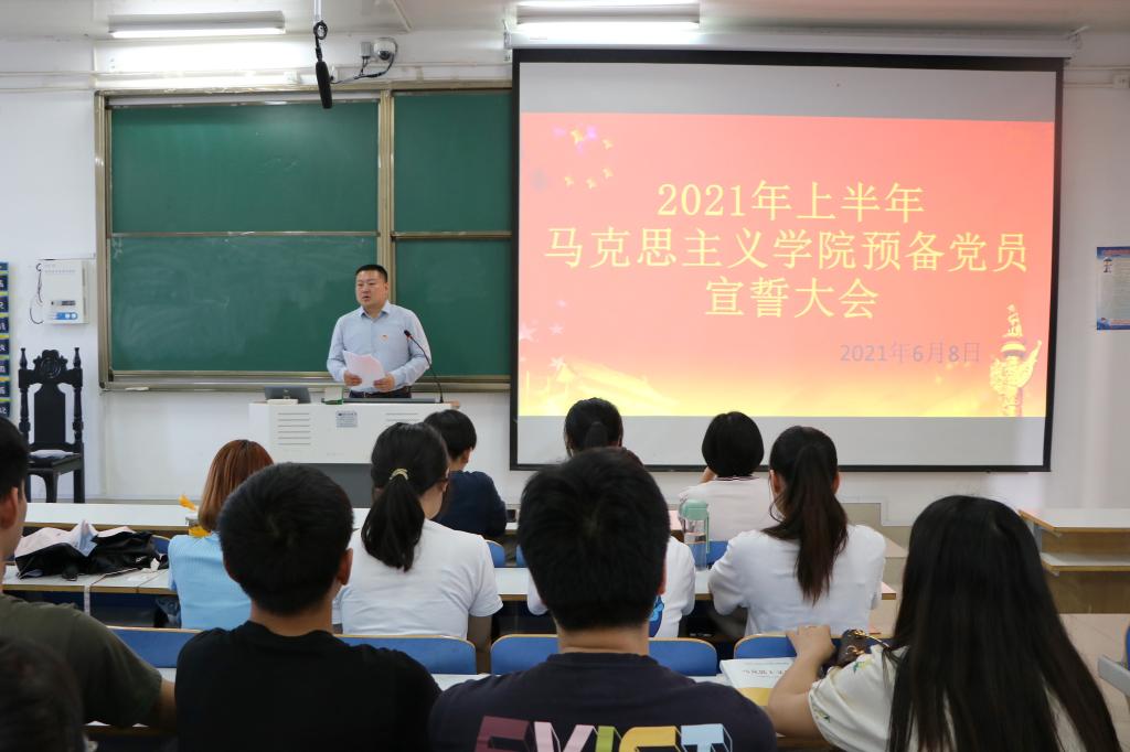 2021年上半年预备党员宣誓大会在社科楼514教室举行。学院党委副书记何晓坚、学生党支部书记、预备党员和部分入党积极分子共同参与此次大会。会议由预备党员王明亮主持。