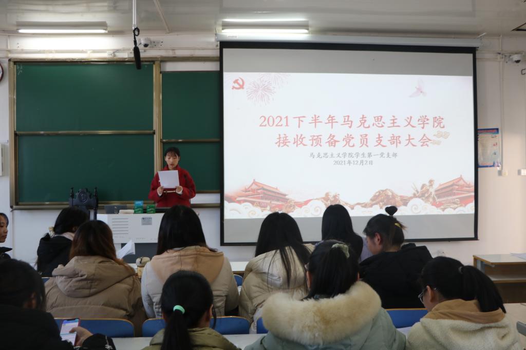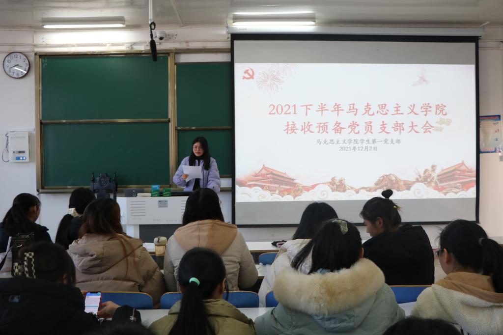 会议严格按照党组织接收预备党员程序进行。首先,靳雨露清点到会人员,宣读党员发展对象名单。随后,韩一嘉、张冰雪、田楚钰、范楚悦、王歆媛、王小鹭、张紫熠、李梦琦、赵佳莹、王诗懿十名申请人依次宣读《入党申请书》,汇报了自己对党的认识、入党动机、本人履历、现实表现、家庭和主要社会关系情况,深切表达了加入中国共产党的意愿和决心。接着,入党介绍人杨青青简要介绍了十位申请人的教育和考察的情况,并对是否同意接收党员发展对象为预备党员提出了意见。随后,与会党员进行投票表决。经支部表决,一致同意接收韩一嘉等十名同志为中国共产党预备党员。最后,杨青青总结发言,她表示,十名预备党员要坚定理想信念,遵循党的章程,时刻谨记入党誓词,严格要求自己。