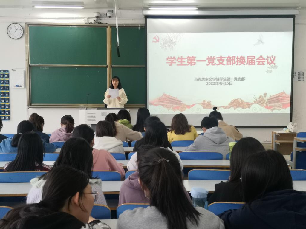 学生第一党支部委员会换届选举大会在社科楼516教室顺利召开。支部全体党员和预备党员参会。此次会议由党支部组织委员靳雨露主持。