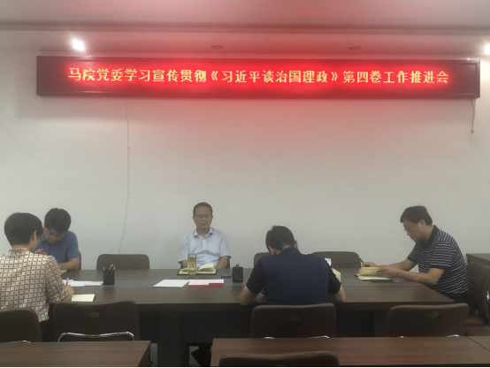 党委在社科楼321会议室召开学习宣传贯彻《习近平谈治国理政》第四卷工作推进会。学院全体党委委员共同参与此次会议。会议由党委书记朱四倍主持。