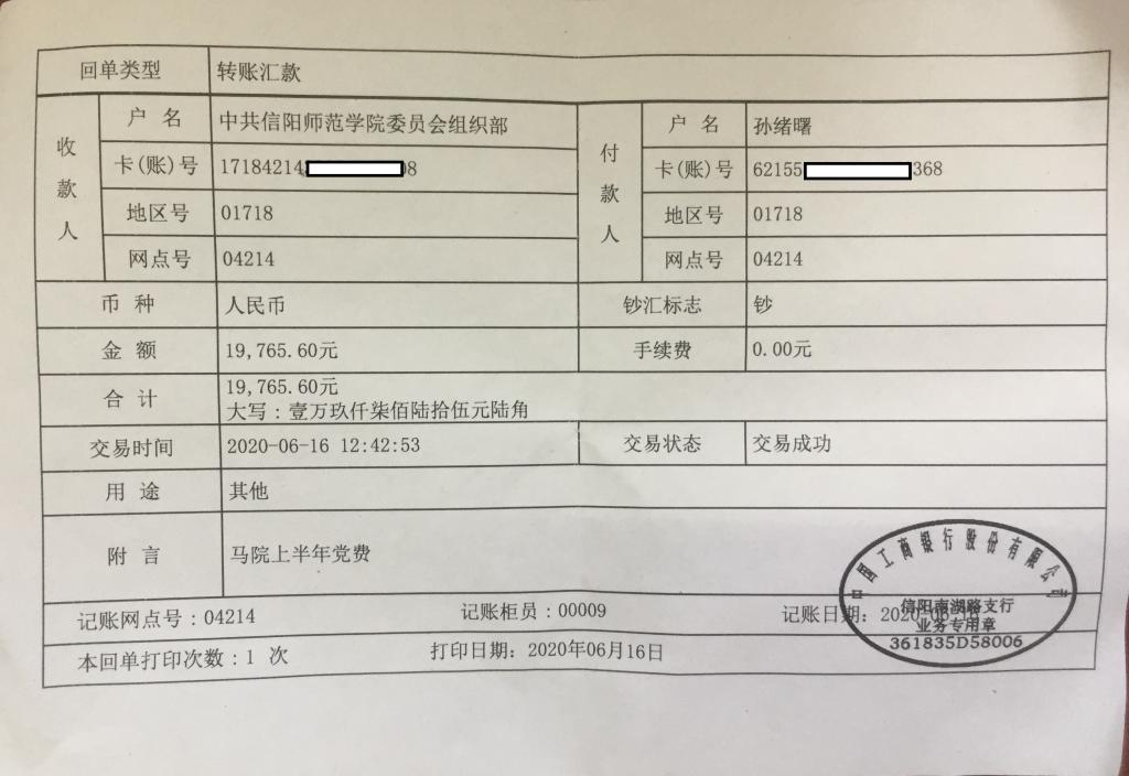 七大罪 2020年1-6月学院师生党员缴纳党费转账单及收据
