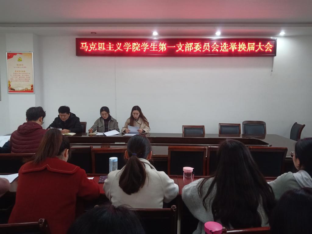 学生第一支部委员会选举换届大会在323会议室召开。学生一支部书记孙绪曙、党小组组长杨青青、全体学生党员和预备党员参加会议。会议由支部组织委员谢文静主持。
