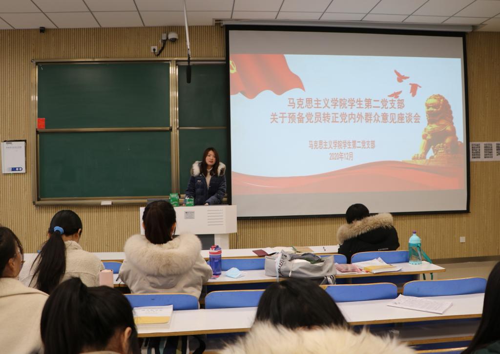 首先,陶青青宣读预备党员拟转正名单。接着,七位预备党员从思想、学习、工作、生活等方面进行汇报,党内外群众积极听取汇报,认真进行讨论发言,一致同意七位预备党员转正。随后,陶青青、曹梦真向七位预备党员提出问题,明确要求,她们强调,要坚定信念,找准目标,不断发挥先锋模范作用。最后,曹栋对会议做出总结,七名预备党员同志,基本符合党员标准,经党内外群众一致决定,同意推荐秦康怡等七位预备党员同志转正,成为正式党员。他强调,党员同志要不断加强理论学习,做好党团帮扶工作,积极为学院服务。