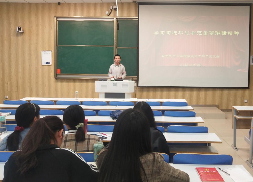学生第二党支部在社科楼515教室顺利开展“学习习近平总书记重要讲话精神”主题党日活动。学生第二党支部全体成员共同参加了此次会议。会议由艾子元主持。