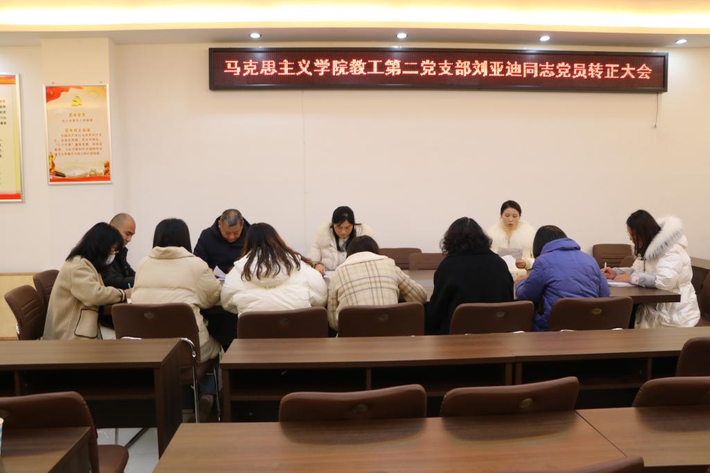 教工第二党支部在社科楼323会议室召开入党转正大会。教工第二党支部支部书记胡春湘、正式党员王帆宇、徐化影、张朝霞、陈雷、曾帝、胡春湘、黄世明、叶长红、王建礼,预备党员刘亚迪共同参加本次会议。会议由胡春湘主持。