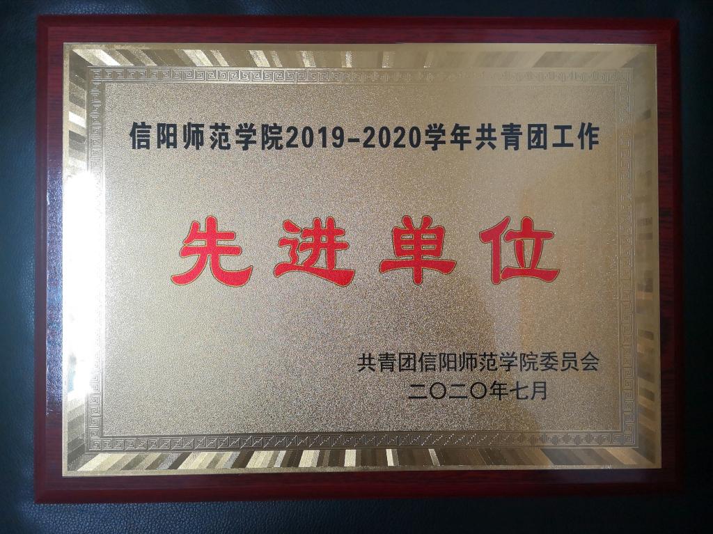 在2019-2020学年的共青团工作中积极参与、表现突出,荣获“信阳师范学院2019-2020学年共青团工作先进单位”称号。