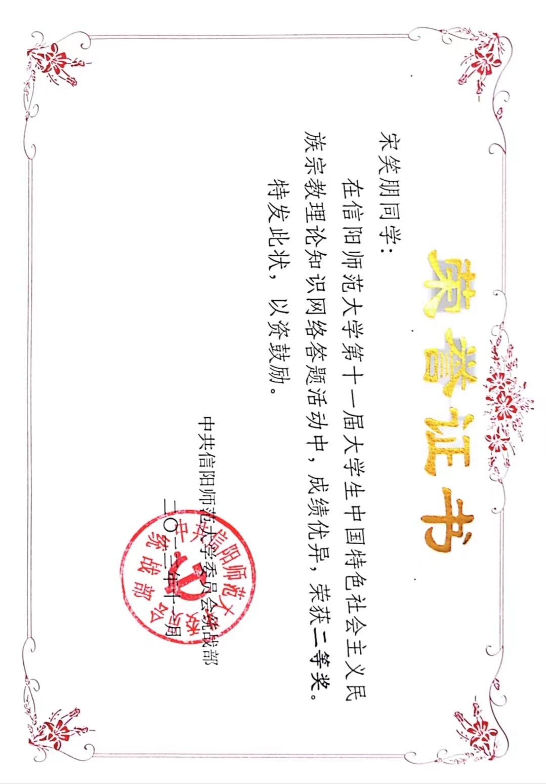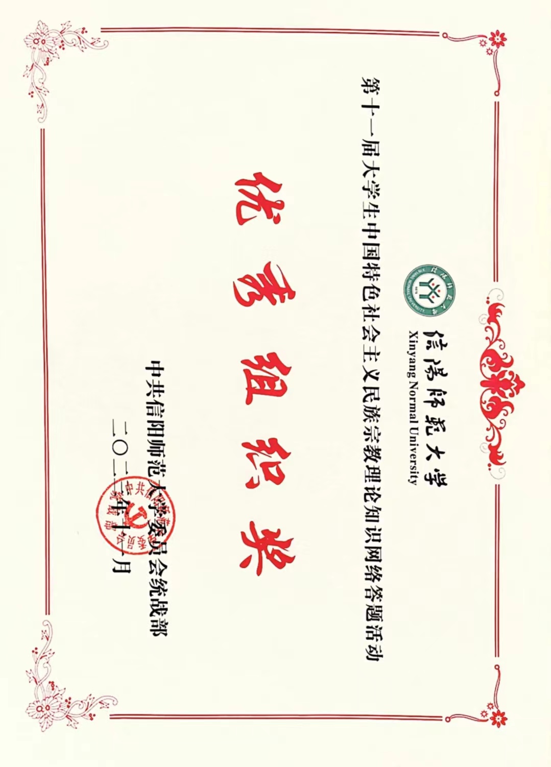 七大罪 荣获第十一届大学生中国特色社会主义民族宗教理论知识网络答题活动“优秀组织奖”
