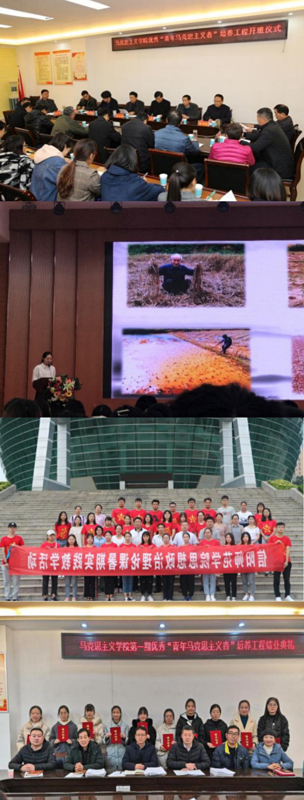 于2018年开办优秀"青年马克思主义者”培养工程,目前开设一期,并已圆满结束。该工程将理论学习、宣讲活动、社会实践三者统一来提高学员自身的理论水平、实践水平、学习水平,努力贯彻习近平新时代中国特色社会主义思想,旨在提高大学生的思想政治素质、理论水平和实践能力,引导大学生积极争做优秀“青年马克思主义者”。