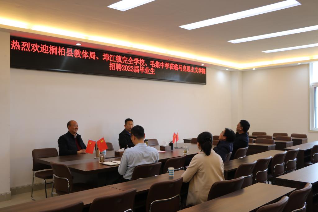 副院长周智、程晋富、党委副书记黄煌、就业秘书陶青青出席本次座谈会。桐柏县教体局、埠江镇完全学校、毛集中学的负责人参加此次座谈会。