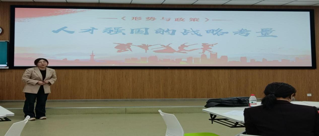 讲师陈孟博老师作“形策”课《加快建设教育强国、科技强国、人才强国》专题以“人才强国的战略考量”为题的教学展示。