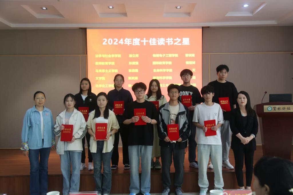 南湖理论研讨社荣获“阅读推广先进集体”称号,张燕霞同学荣获“2024年度十佳读书之星”称号。