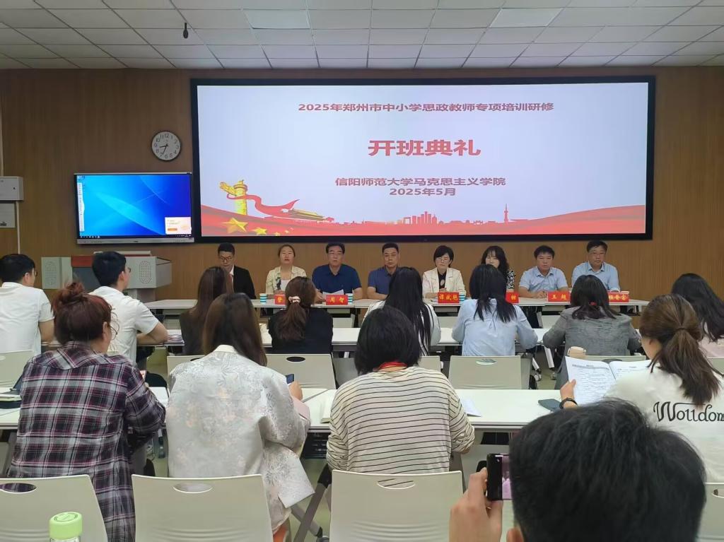 为进一步强化思政课教师队伍建设,提升思政课教学质量与育人成效,5月13日上午,2025年郑州市中小学思政课教师专题培训开班典礼在社科楼120教室举行。郑州市教育局教师教育处副处长谭斌艳、科员田甜,郑州市第二十四中学主任华国宝,七大罪