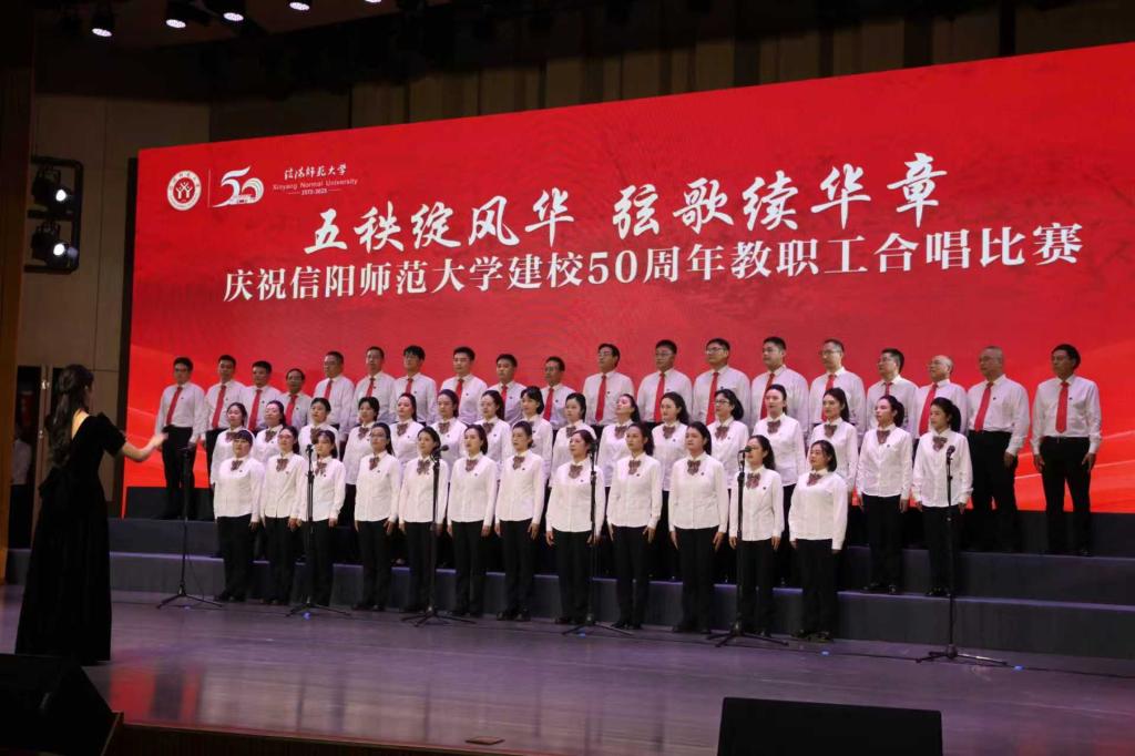 合唱团精神饱满、配合默契,在闫文、程家乐两位同学的精准指挥下,深情演绎了《托起民族的希望》与《唱支山歌给党听》两首作品。老师们声情并茂、慷慨激昂,将专业素养、家国情怀与爱校热情完美融合,以嘹亮歌声表达了对祖国的无限热爱,致敬学校五十载不凡历程。