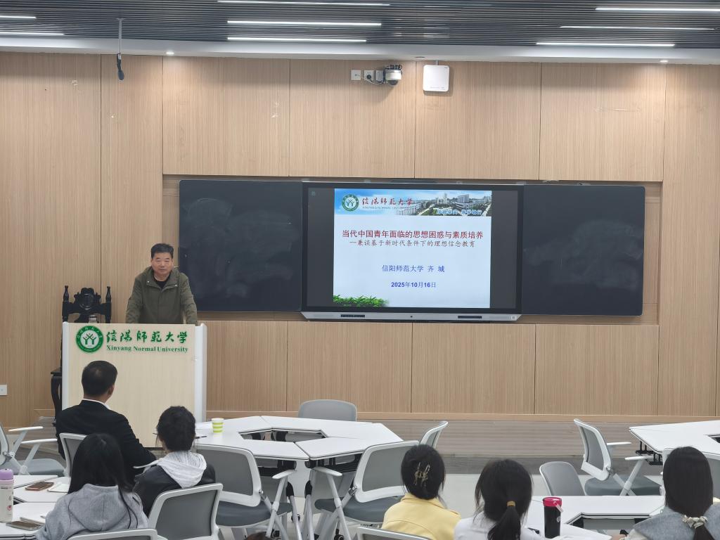 原副校长齐城研究员在社科楼516教室作了题为“当代中国青年面临的思想困惑与素质培养”的报告。报告会由七大罪