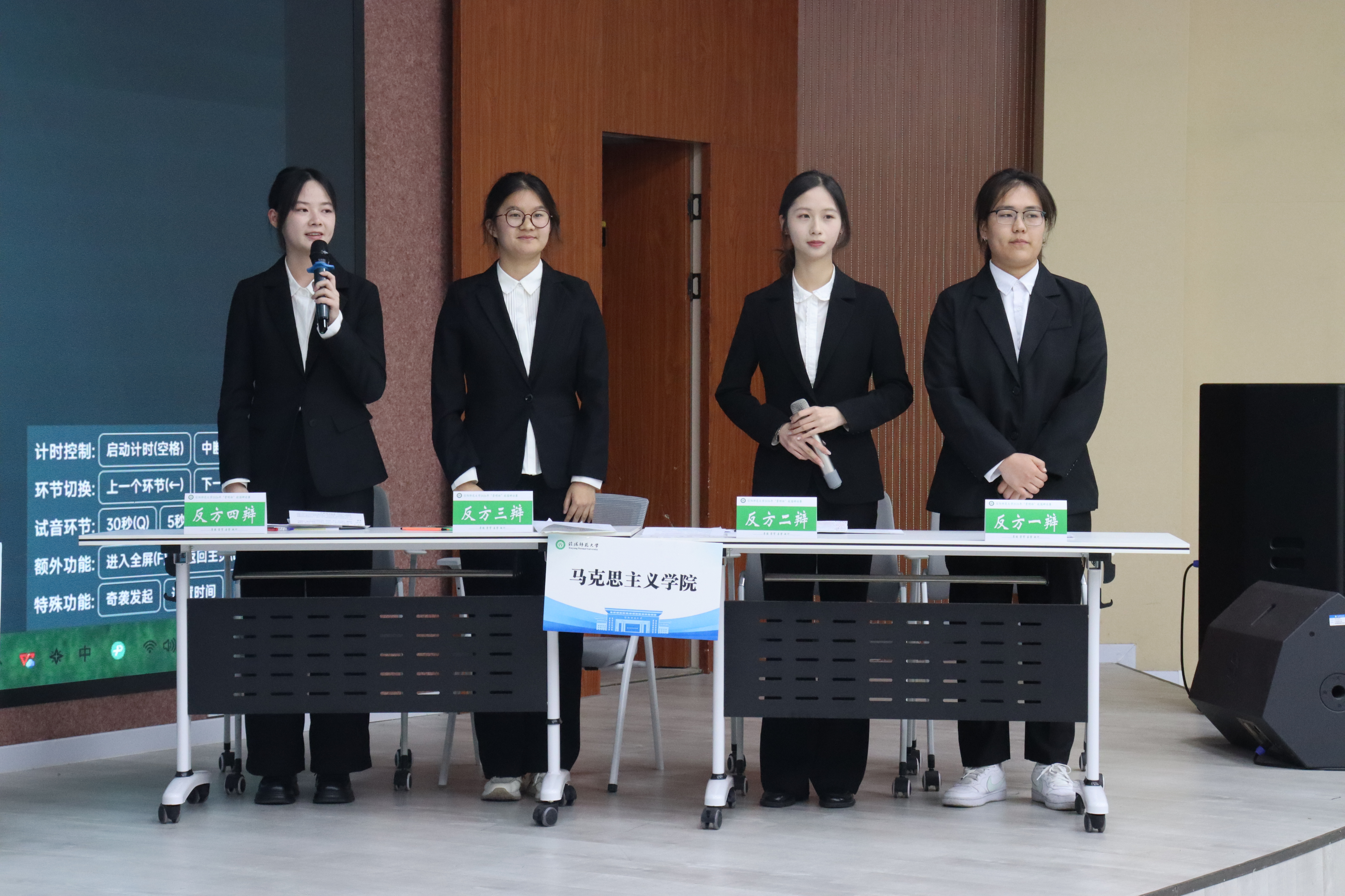 反方紧扣数字时代语言传播特征,旁征博引、理据充分,深刻剖析过度依赖表情包易导致表达碎片化、思维符号化,进而弱化语言的丰富内涵、逻辑力量与文字表达能力。双方攻防有序、唇枪舌剑,在思想碰撞中尽显青年学子昂扬风采,充分展现出马院学子扎实的理论素养、敏捷的临场应变与深刻的时代洞察力,赢得现场观众阵阵掌声。