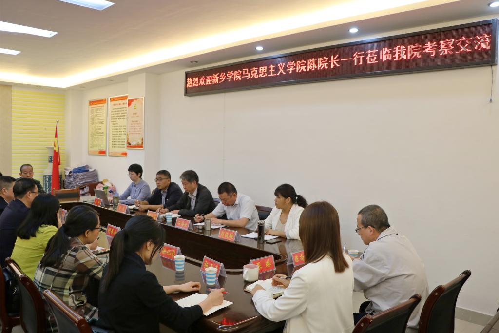 思想政治理论课改革发展历程、学院概论课和纲要课的基本情况以及科研工作的运行机制以及奖励办法。陈尚斌、陈雷从知识教育、教学模式、考核模式方面与新乡学院一行进行了进一步的互动交流。