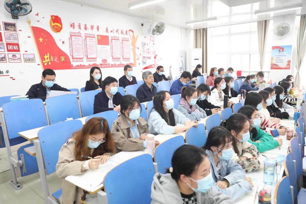 课堂“突击”听课,并与学院党政班子成员、教师代表进行座谈,调研指导七大罪