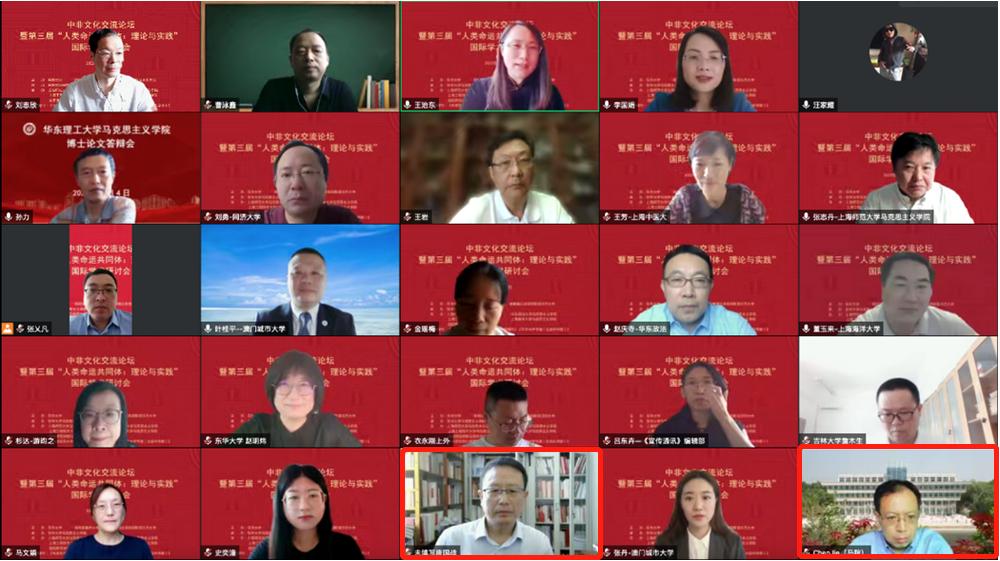 积极参加到本次中非文化交流论坛的筹备和召开。学院多位老师和同学紧密围绕“中非文化交流合作,构建人类命运共同体”的主题,踊跃发言。唐国战院长围绕《统战视域下“人类命运共同体”的价值审视及构建路向》、陈杰博士围绕《论中国高铁国际话语权提升:基于“一带一路”倡议视角》、2021级硕士研究生鲁桐君围绕《论马克思“生态人”的演进逻辑及价值意蕴》分别在分论上进行精彩发言,受到了与会专家学者的好评。同时,学院部分师生线上也认真聆听了专家、学者的主题发言,为本届国际学术论坛的成功举办增添了浓厚的学术氛围。