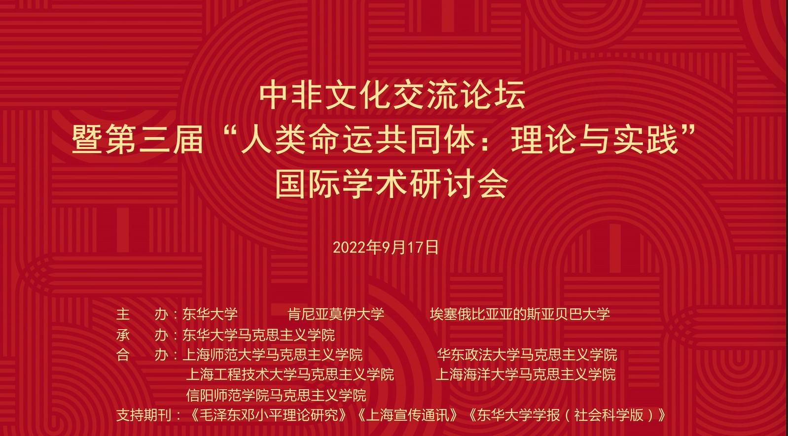 等单位共同举办的2022中非文化交流论坛暨第三届“人类命运共同体:理论与实践”国际学术研讨会于9月17日在线上成功举行。来自澳门城市大学、上海师范大学、华东政法大学、上海技术大学、信阳师范学院等高校和科研机构的专家学者,分别围绕各自的主题,在论坛上进行了分享交流。本次研讨会旨在通过搭建高水平的学术对话平台,汇聚海内外学者及各界人士共同探讨人类命运共同体的文明底色和发展前景,为构建人类命运共同体注入思想力量。