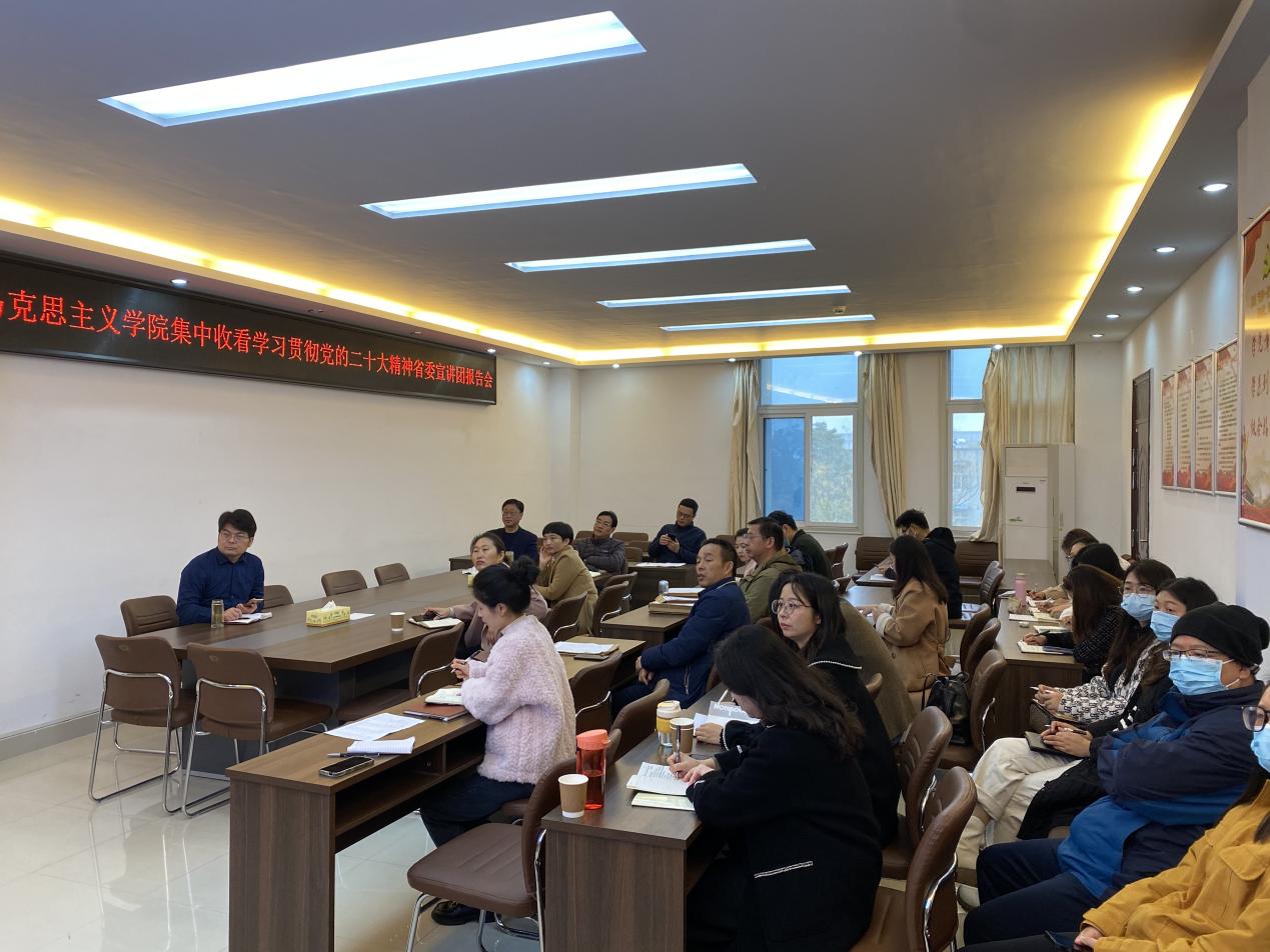 在社科楼323会议室设分会场,集中收看学习贯彻党的二十大精神省委宣讲团王清义教授报告会。