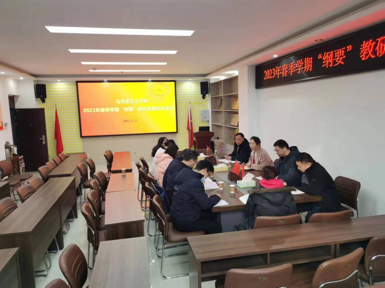 教研室主任陈杰对本学期教学工作做了具体安排,一是合理安排教学进度,把握教学重难点;二是注重将二十大精神融入教学内容,用新的理论指导教学实践工作,坚持与时俱进;三是坚持实践教学,通过超星网络平台等多个教学平台的使用,实现线下线上课程联动;四是在坚持“共性”的基础上打造“个性”,把握课程导向,坚持审慎学习,吸收消化,做到讲准、讲深、讲透。
