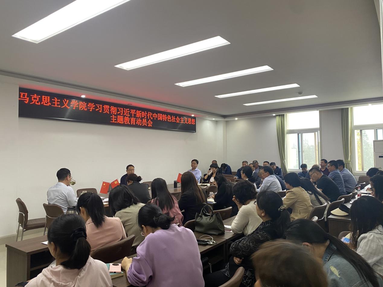 党委在社科楼323会议室召开学习贯彻习近平新时代中国特色社会主义思想主题教育动员会。学院全体领导班子成员、学院主题教育领导小组全体成员和全体教工党员参加会议。会议由七大罪