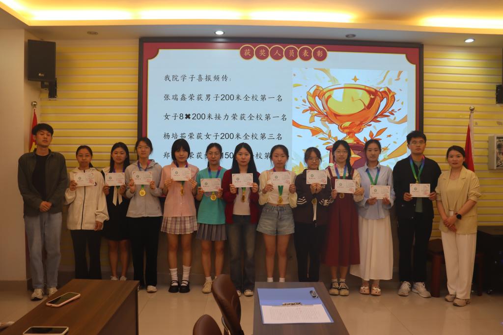 第一届春季运动会。学院师生奋勇争先取得优异成绩,其中,女子团体成绩列全校第八名、女子8x200接力荣获全校第一名、学院荣获“精神文明单位”称号。