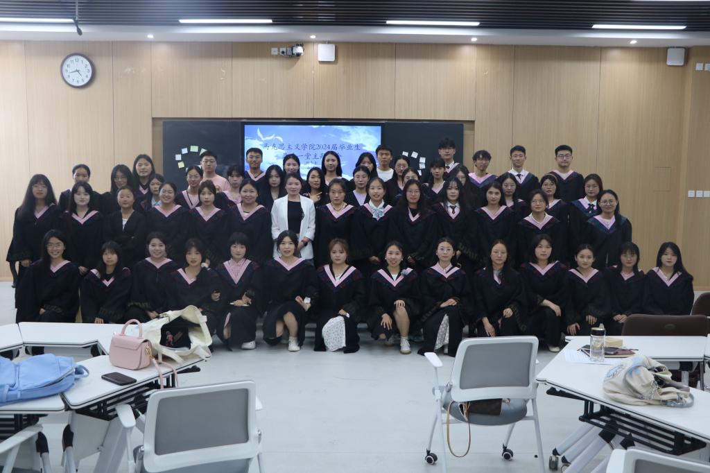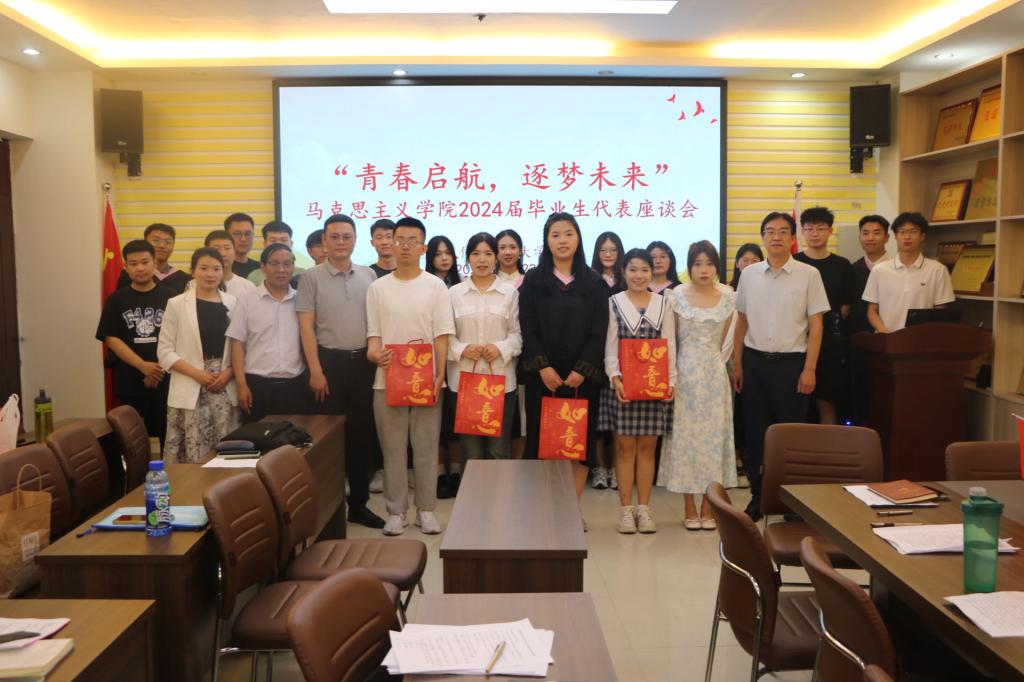 召开“青春启航,逐梦未来”——2024届毕业生代表座谈会。毕业生代表围绕四年大学生活谈感受、话成长、感师恩,教师代表深情寄语毕业生,从爱校荣校、感恩奉献、终身学习等方面勉励大家坚定信念、接续奋斗,学院领导就厚植家国情怀、志存高远、脚踏实地等方面提出殷切期望。会后,以调查问卷方式向毕业生征求关于学院建设发展的意见建议,领导老师为毕业生发放毕业礼物并合影留念。