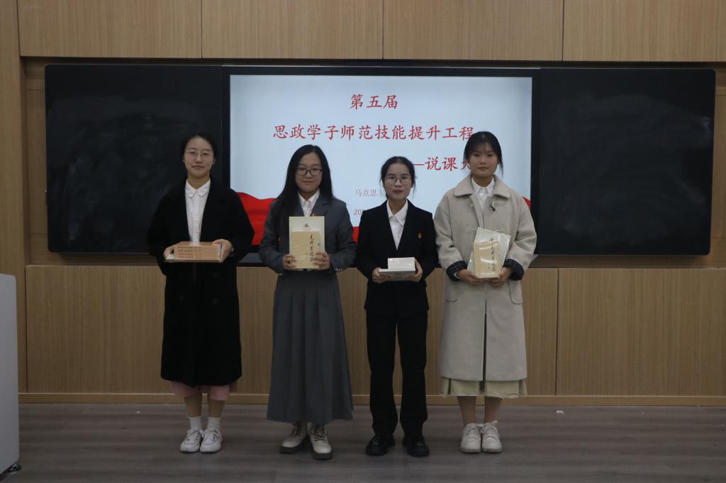 在决赛中,第四组以“做更好的自己”为题,孙语乐和马思源同学从教材分析、学情分析、教法学法等方面深入分析课程内容,通过多媒体互动、情景模拟、项目式学习等多元化教学手段,让评委和观众眼前一亮,取得佳绩;第五组以“正确对待顺境和逆境”为题,李雯娜和崔航宁同学从说教材、说学情、说教学目标等七个方面展开,引导同学们自主思考、合作探究,为现场师生带来一场精彩绝伦的说课。