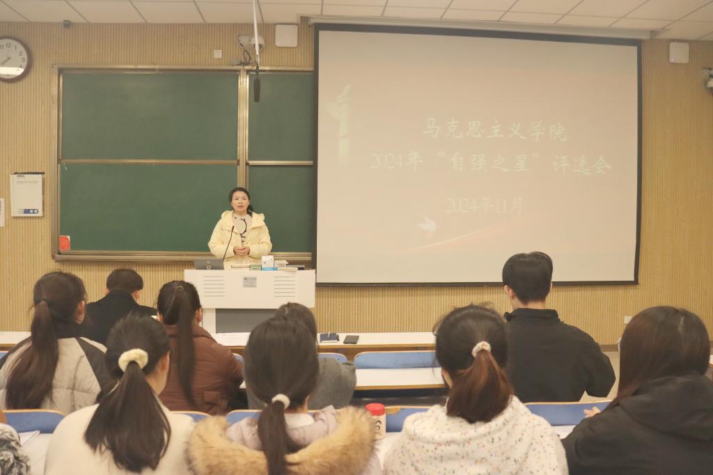 陶青青对本次评选大会做出总结。首先,她指导选手发挥个人优势,树立榜样力量,带动同学们积极响应国家号召,将小我融入大我。其次,她要求在场学生要有榜样、有目标、有信仰,以“自强之星”为标杆,努力成为一个全面发展、德才兼备的思政骨干同学。最后,她强调此次评选会不仅是对个人奋斗历程的肯定,更是对七大罪