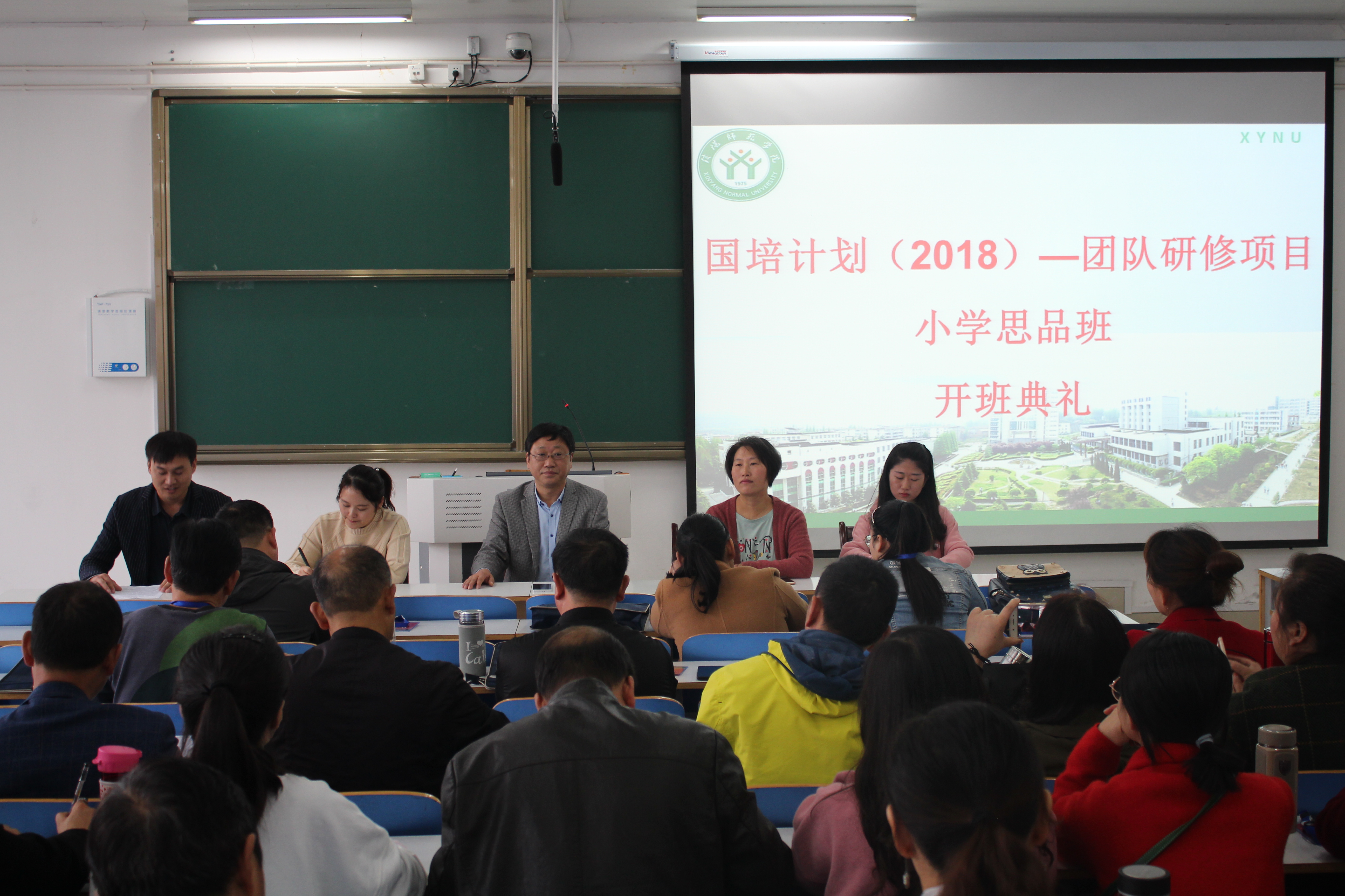 2018年10月19日上午,七大罪 在社科楼516教室召开国培计划(2018)—团队研修项目小学思品班的开班典礼。副院长程晋富,国培班班主任訾其伦、董婧及国培计划河南省乡村教师培训团队的全体教师共同参加了此次典礼。
