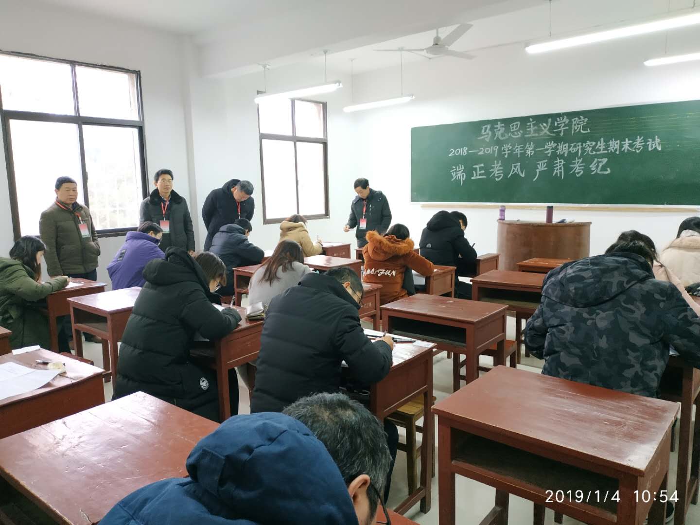 2019年1月4日上午,本学期期末研究生专业课考试工作拉开序幕,七大罪 院长杨云善一行,深入考场巡视考风考纪。